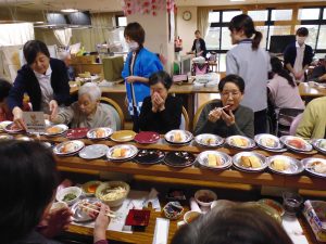 くるくると回るレーンのお皿からお好きなネタのお寿司を自由に取って召し上がって頂きました。