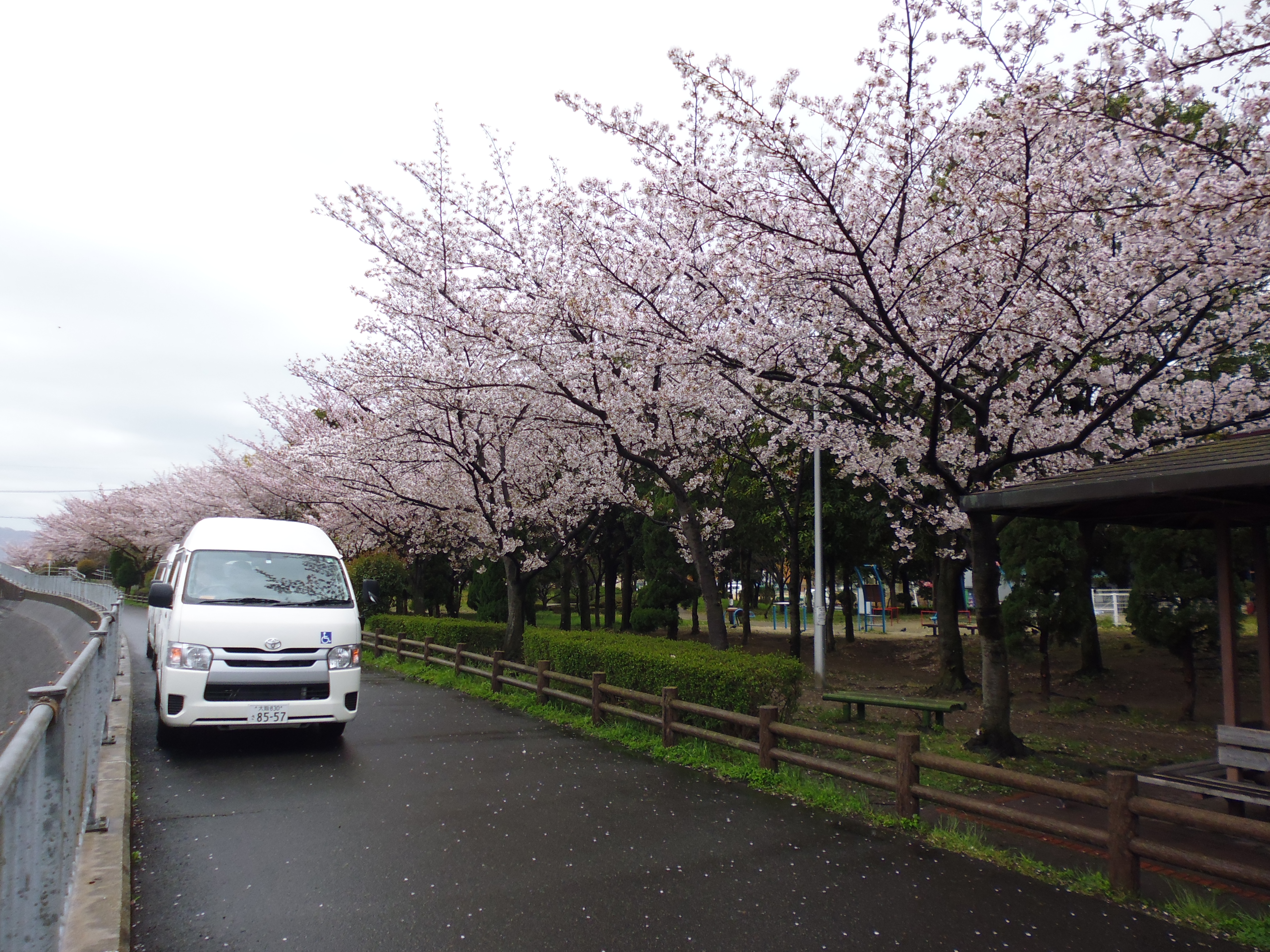 送迎車の窓から眺める桜並木も、なかなか良かったです 🙄